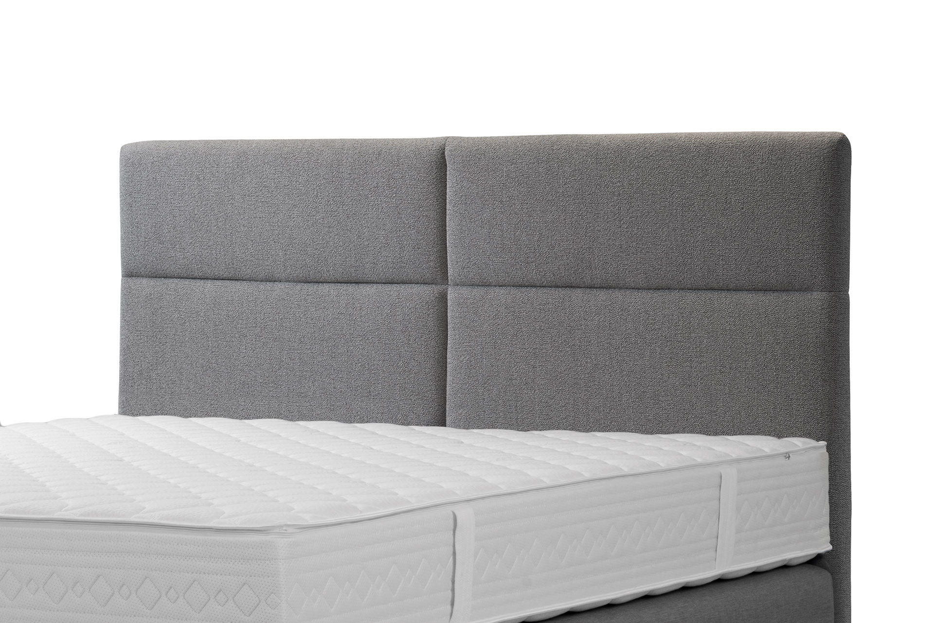 Erleben Sie das ausgeprägte Gefühl von Geborgenheit durch das hohe Betthaupt und ein individuell angepasstes Liegegefühl. Unterschiedliche Matratzen und Boxspringvarianten sowie hochwertige Topper Kaltschaum oder Viskoseschaum) ermöglichen eine individuelle Anpassung des Liegegefühls an Ihre Vorlieben und Anatomie. Eine eingenähte Antirutschmatte auf der Oberseite des Bettes garantiert einen festen Halt der Matratze.
