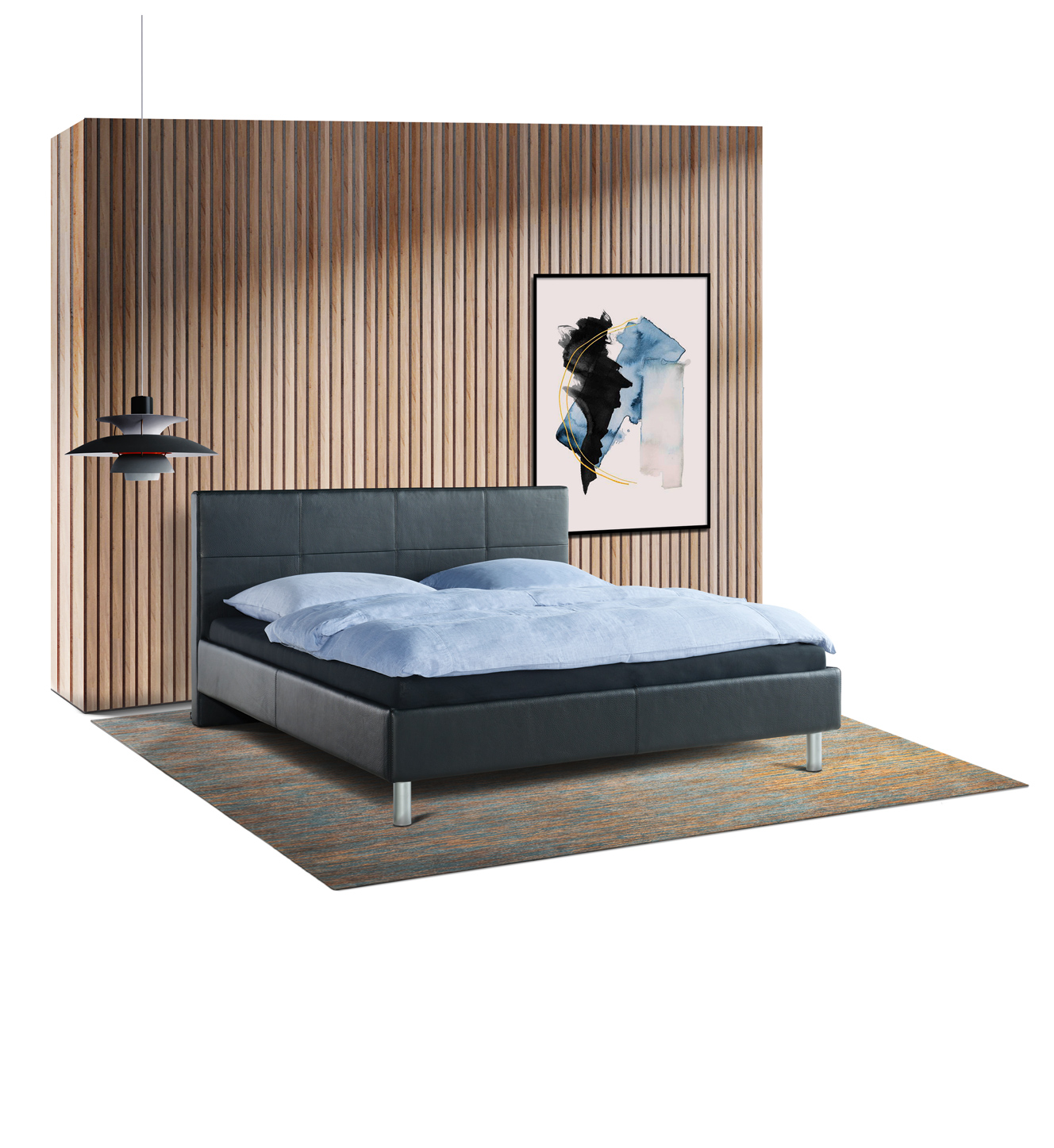Das Design des Luxusbettes ZAT489 überzeugt: stark, impressionant, temperamentvoll und doch zugleich heimisch und friedlich. Ersteres zeigt sich an dem hohen Kopfteil mit einer rechteckigen modernen Naht. Letzteres durch die edlen säulenartigen Füße, die das Bett mit Ihrem Schlafzimmer eins werden lassen. Diese einzigartige Kombination macht das Bett spektakulär. Wie bei all unseren Luxusbetten können Sie die zu Ihnen am besten passende Einlegehöhe zwischen 20 und 40 cm wählen, genauso wie Ihre bevorzugte Bettbreite und -tiefe.