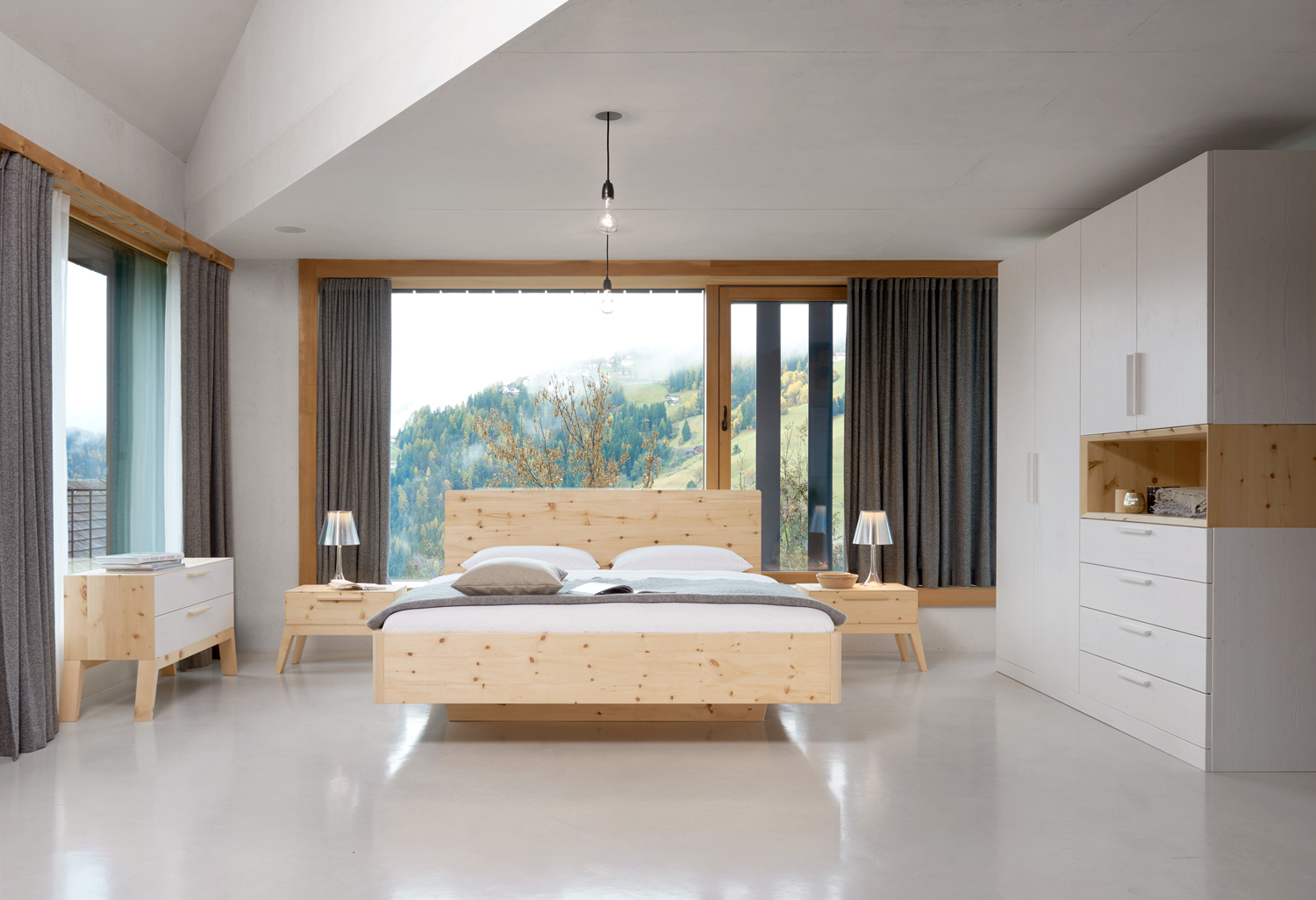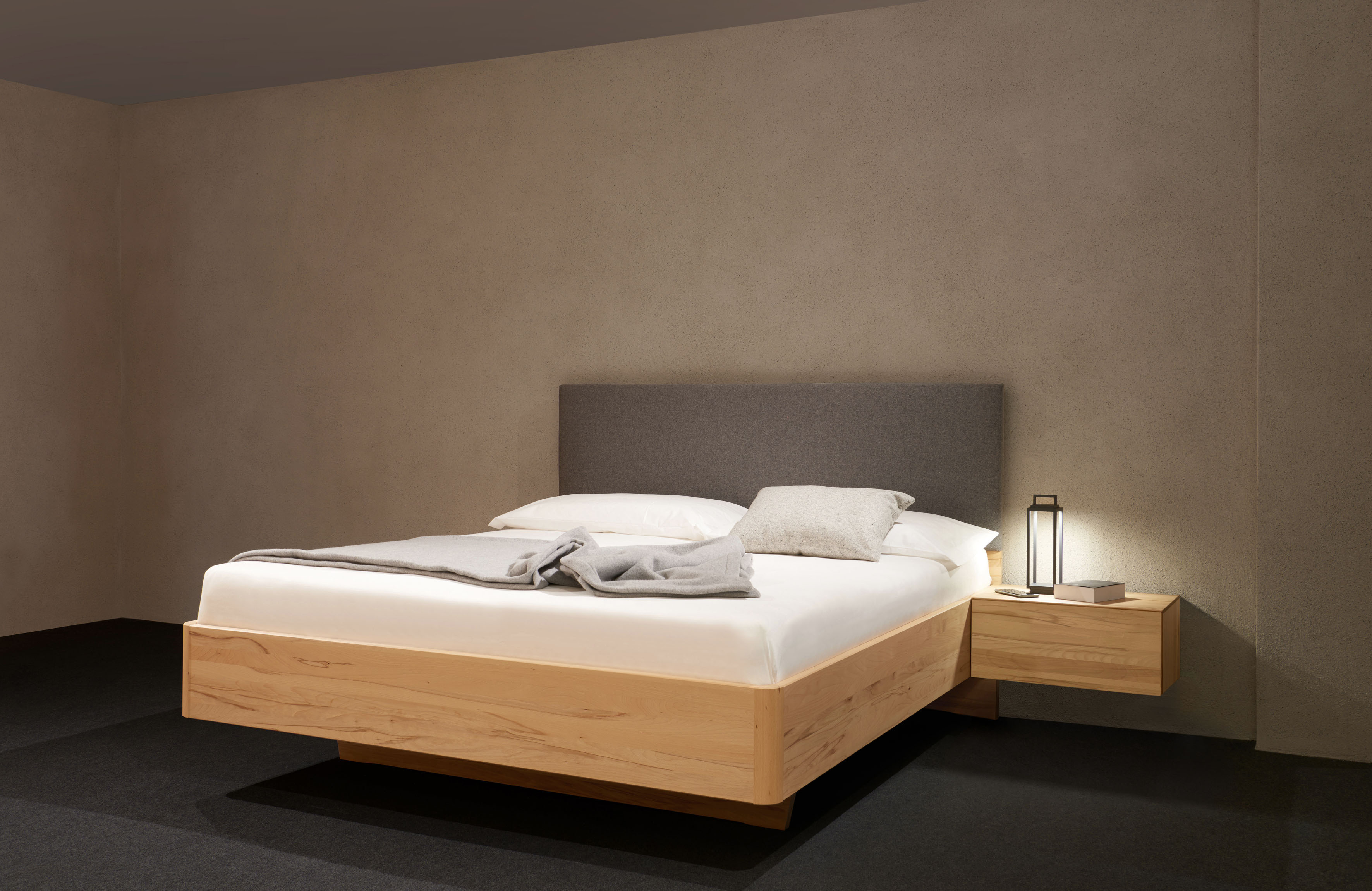 Genießen Sie ein luftiges Design für unbeschwerte Nächte! Mit dem Modell ZAT493 holen Sie die Ruhe der Natur in Ihr Schlafzimmer. Die ausgefeilte Schwebeoptik des Bettgestells entfaltet eine leichte, elegante Raumwirkung. Das Kopfteil des Betts können Sie nach Ihren Wünschen gestalten: z. B. als gepolstertes Kopfteil mit hochwertigen Lodenstoffen oder als Massivholz-Variante. Individuelle Nachttische runden das Design ab.