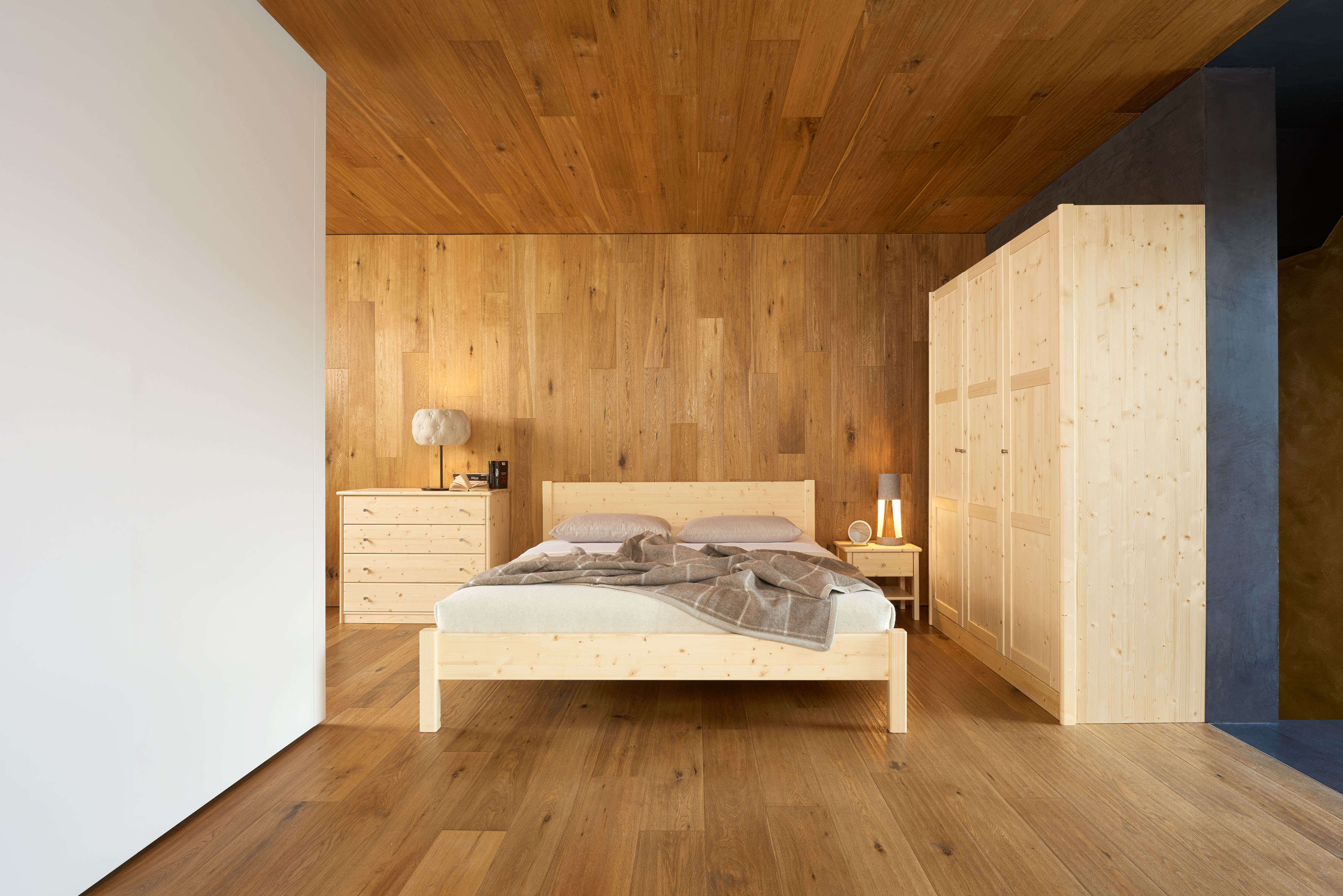 Sie schätzen schlichte Schönheit in zeitlosem Design? Dann werden Sie die Linie ZAT496 lieben! Reduziert auf klare Linien und stabil konstruiert aus massivem Naturholz, steht dieses Schlafzimmer für Beständigkeit. Das Kopfteil des Betts können Sie individuell gestalten: gerade, geneigt, mit Sprossen, etc.