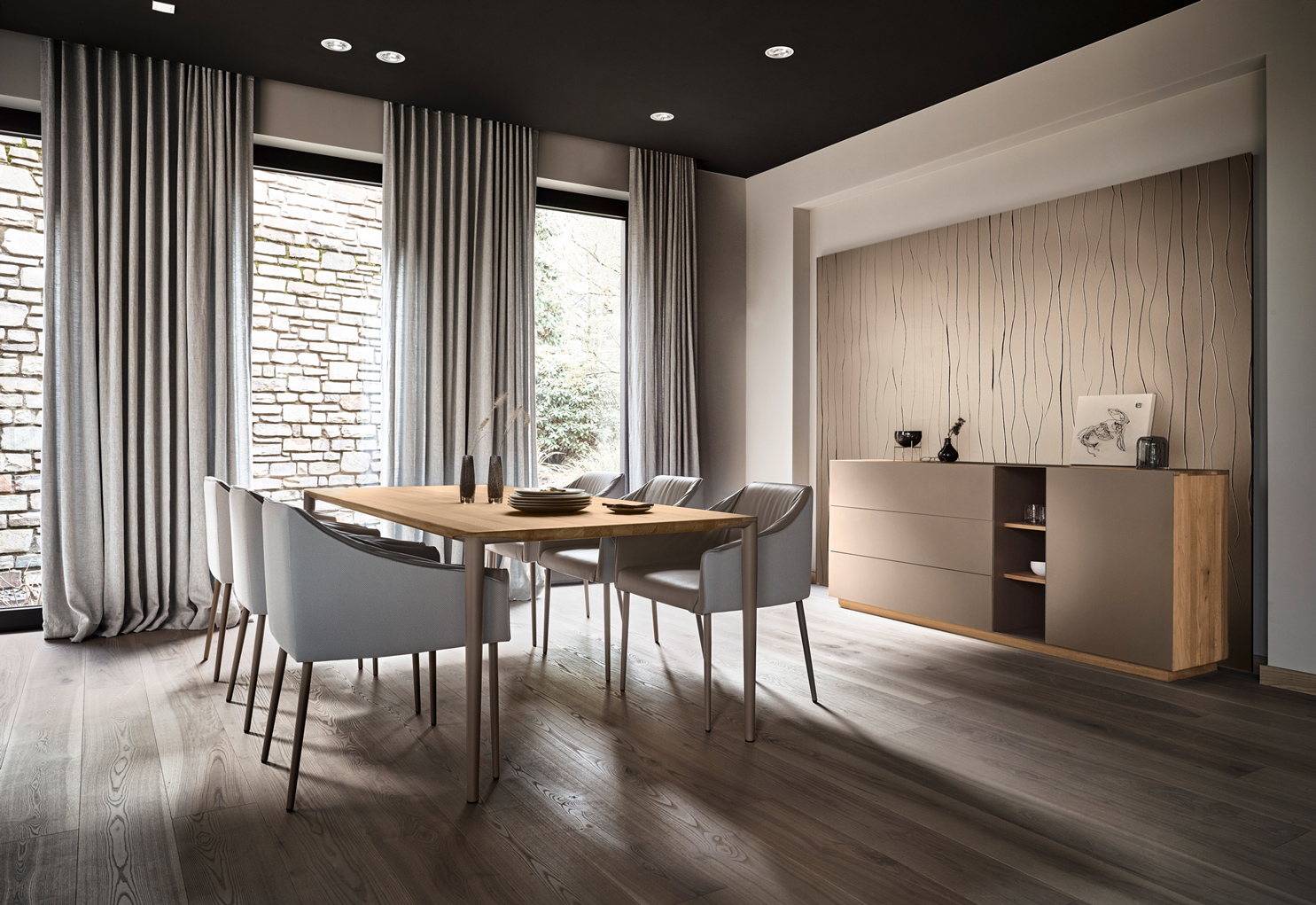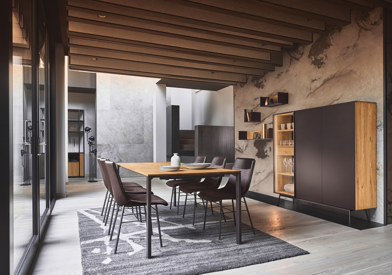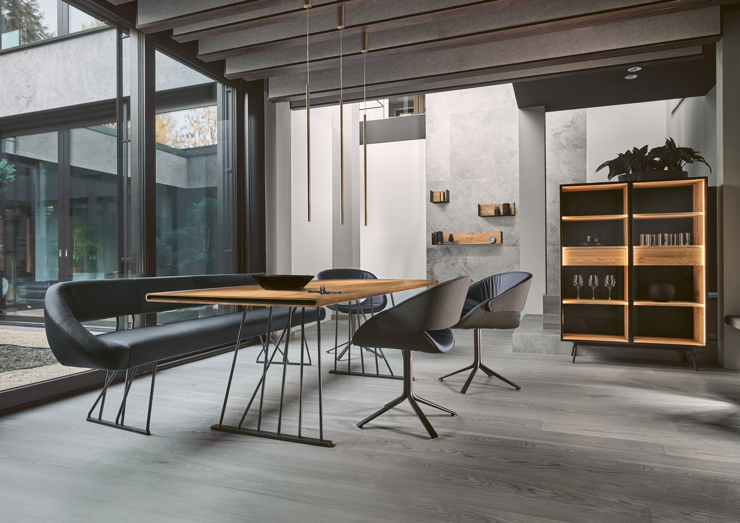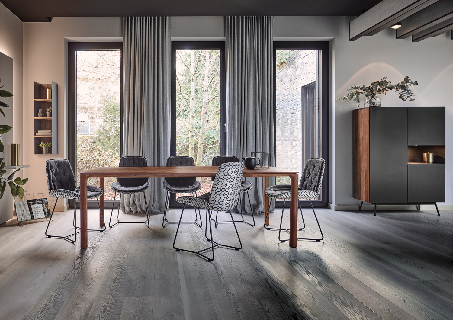 Diese Esszimmerkollektion schafft den Spagat: Die massiven Werkstoffe Holz und Metall werden in grazilen Linien zu einem Ensemble moderner Leichtigkeit verbunden. Das reduzierte Design fügt sich stilvoll in moderne Wohnkonzepte ein. Unaufgeregt und doch fesselnd!