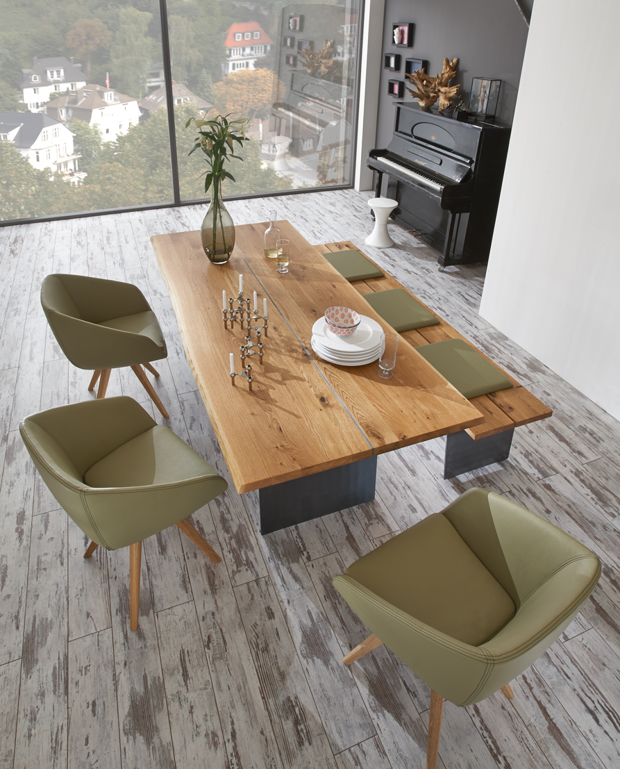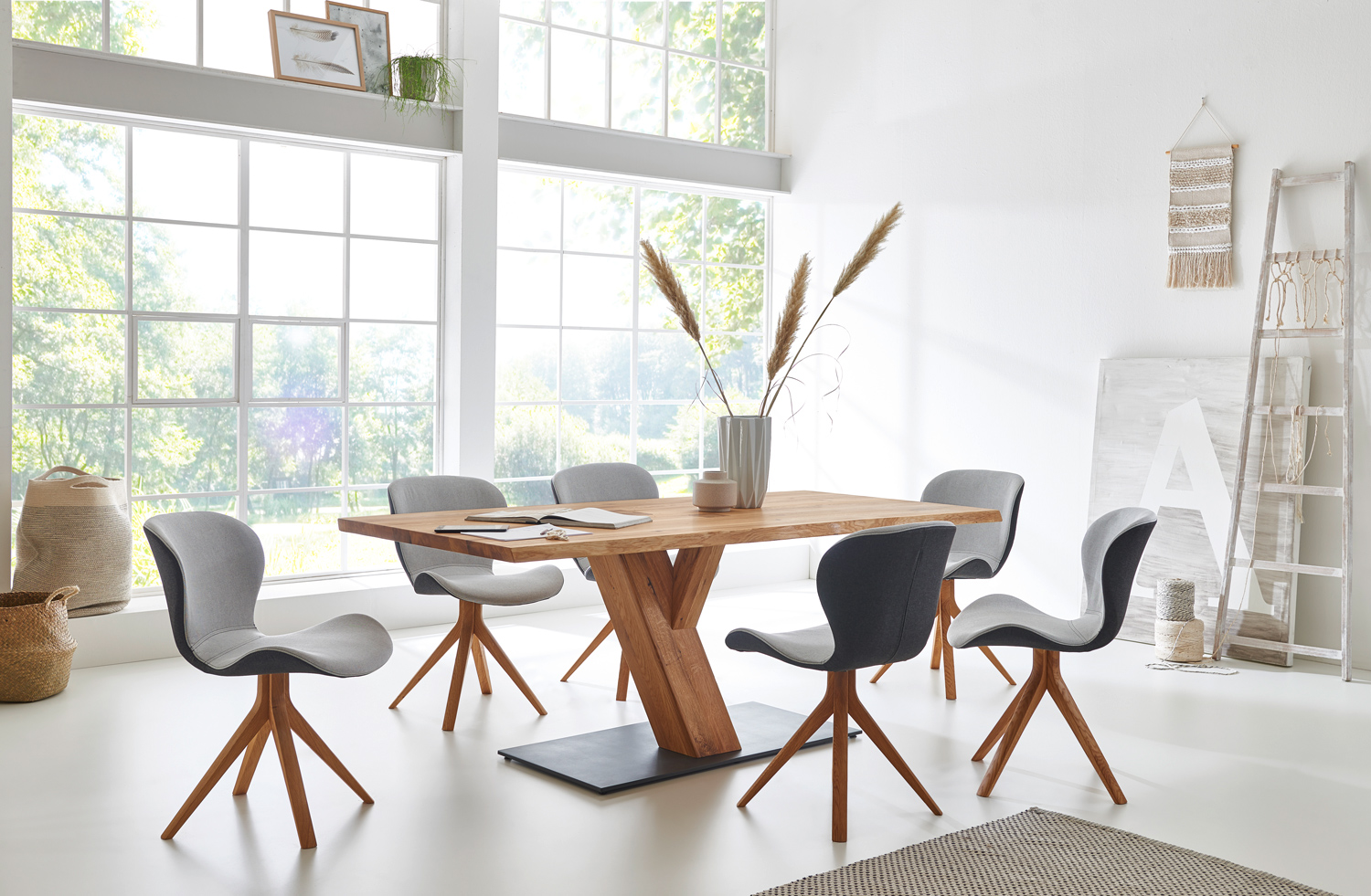 Rustikales, naturgeöltes Massivholz in Kombination mit exzellentem Design. Jeder Baum mit seinen Zweigen hat einen eigenen Charakter. So gehören offene Risse in der Tischplatte, natürliche Baumkanten und ausgeschliffene Äste zu den Markenzeichen dieser Esszimmer-Linie. Des Weiteren bestimmen auch vielfältige Variationsmöglichkeiten diese Kollektion. Erfahren Sie die perfekte Symbiose aus Ursprünglichkeit, Design und Lifestyle.