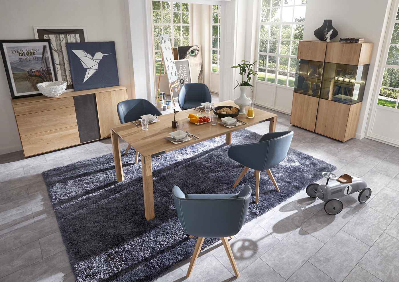 Die Kollektion ist aus Massivholz gebaut und steht für modernen Lifestyle ohne Kompromisse. Der Rohstoff wird ausschließlich mit natürlichen Ölen behandelt. Das Design ist klar und schnörkellos, die Einzelmöbel sind harmonisch kombinierbar.