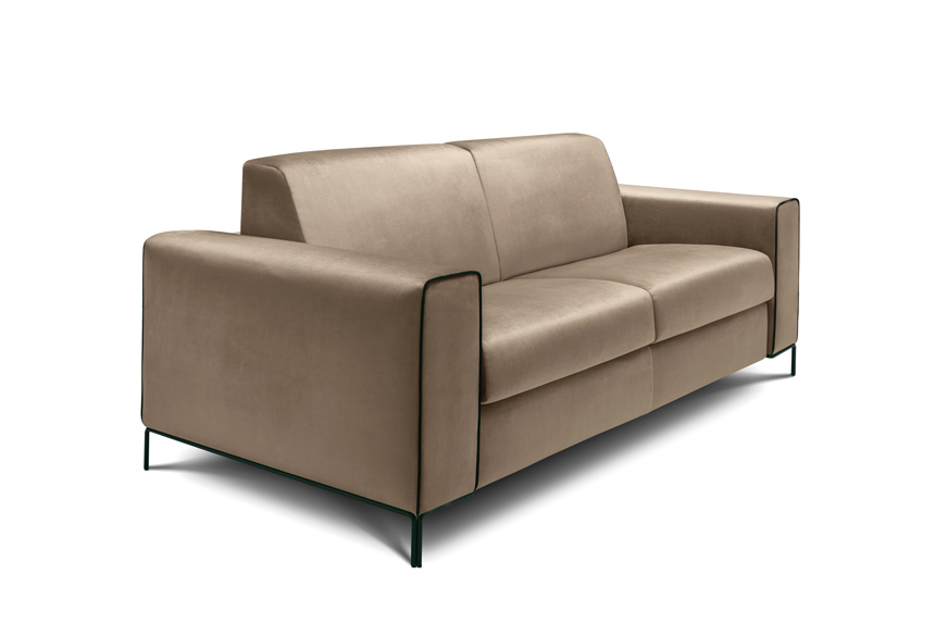 Dieses Sofa kann im Mittelpunkt der Raumgestaltung stehen. Es ist der ideale Begleiter für entspannte Momente des Komforts und des unbeschwerten Lebens. Das Modell kann mit oder ohne Bettfunktion ausgeführt werden.