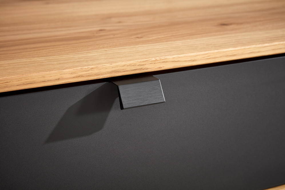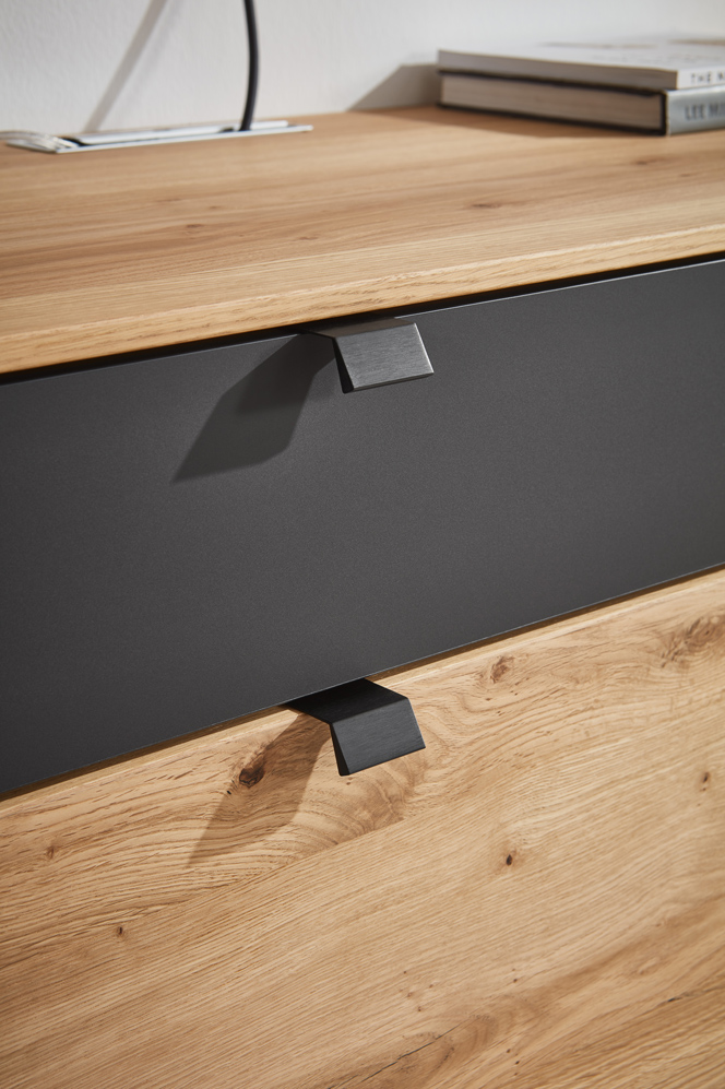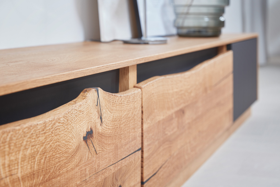 Gestalten Sie harmonische Wohnbereiche mit dieser außergewöhnlichen Möbellinie aus österreichischer Fertigung. Die urwüchsige Maserung der Balkeneiche ist ein zentrales Gestaltungselement dieser vielfältigen Designlinie, die TV-Lowboards, Hängeschränke, Regale, Essgruppen und vieles mehr bietet. Für puristische Akzente kombinieren Sie die Balkeneiche mit Antifinger-Print Oberflächen.