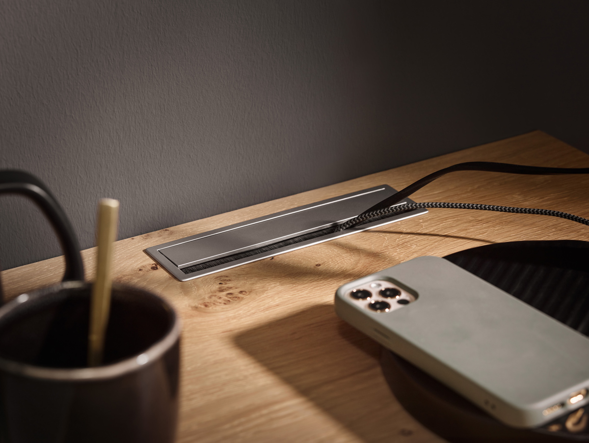 Gestalten Sie eine Garderobenlösung, die ein stilvolles Ambiente unterstützt und sich im Stauraum-Angebot am Alltag Ihrer Familie orientiert. Spiegel mit integrierter Ablage und Kleiderhaken, moderne Garderoben-Paneele und Sideboards ermöglichen eine individuelle Komposition für den Eingangsbereich. Auch passende Möbel für kompakte Arbeitsplätze sind Teil des Konzepts. Integriertes Kabelmanagement und Stauraum schaffen einen praktischen und schönen Arbeitsplatz im Wohnbereich.