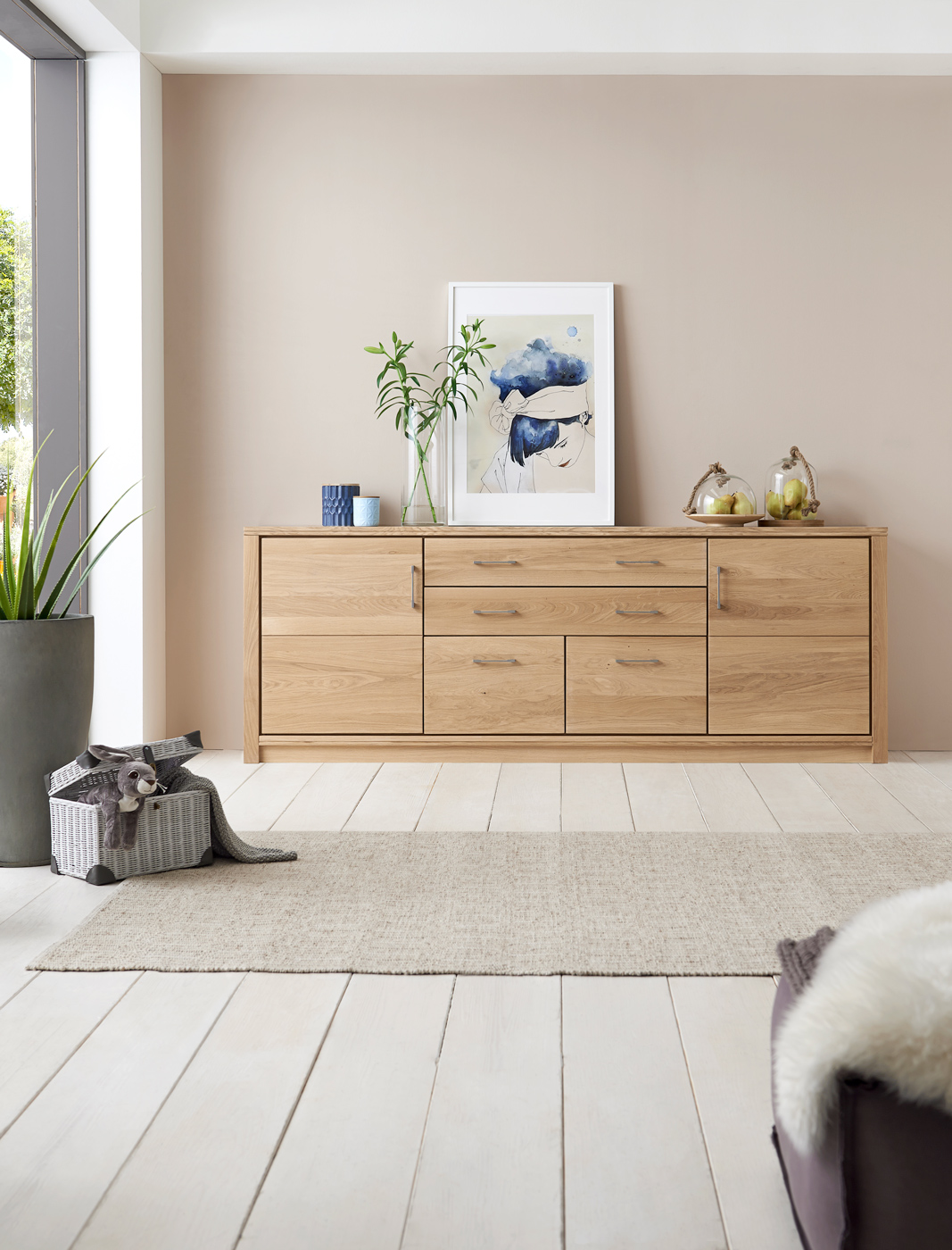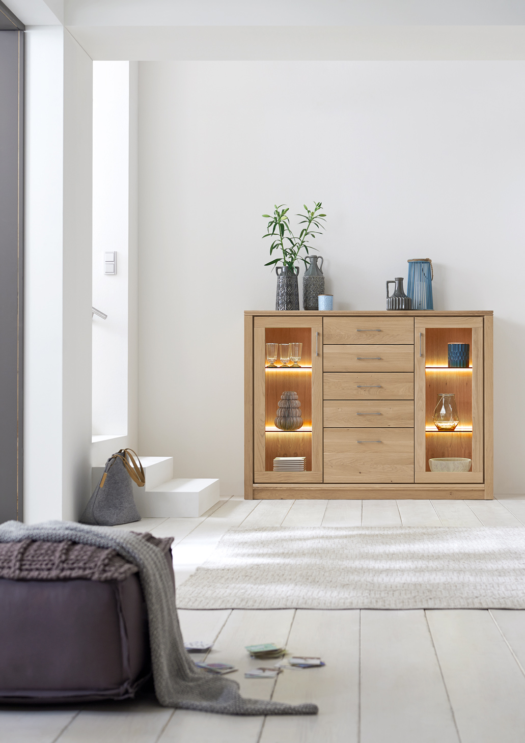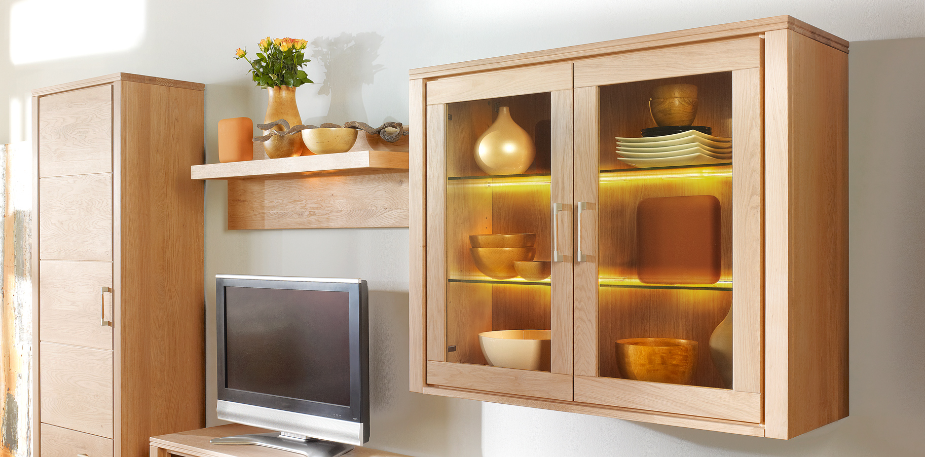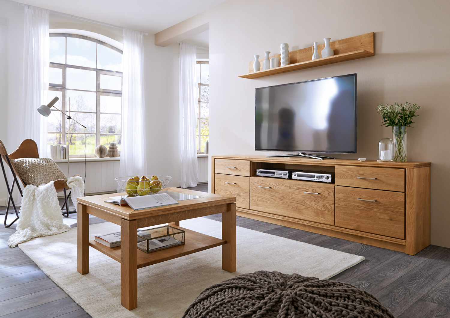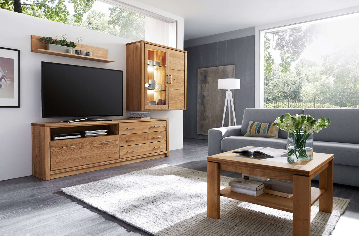 Diese Wohnzimmer-Kollektion steht für schlichte Eleganz und wohnliche Gemütlichkeit. Zahlreiche Kombinationsmöglichkeiten ermöglichen eine individuelle Gestaltung Ihres Wohnzimmers. Luftige Wandboards, geräumige TV-Bänke, High- und Sideboards sowie Couchtische planen Sie passend zum Grundriss und Ihren Bedürfnissen.