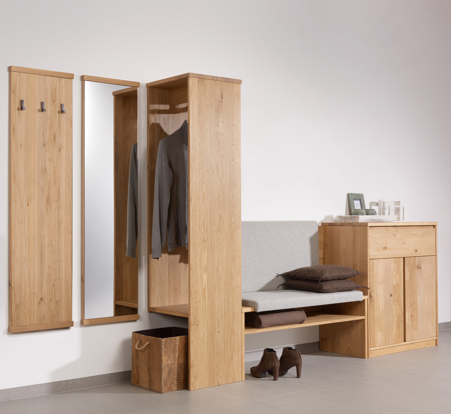Der erste Eindruck zählt – auch bei der Gestaltung Ihres Zuhauses! Nutzen Sie die Flexibilität der durchdachten Garderoben-Linie ZAT273 für die Gestaltung eines individuellen Garderoben-Bereichs. Ablageflächen, Spiegel, Garderobenpaneel, Stauraum, eine integrierte Sitzgelegenheit – hier verbindet sich Funktionales mit geradliniger Ästhetik.